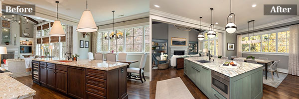 Allard + Roberts was tasked with putting a team together to handle the renovation process, and with envisioning a new color palette and architectural details throughout to personalize the home. Our design team created floor plans and elevations for the renovations, including a new custom Kitchen design and custom built ins. A+R also identified a general contractor to do the work.